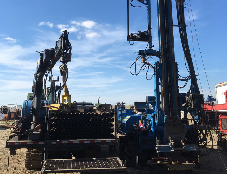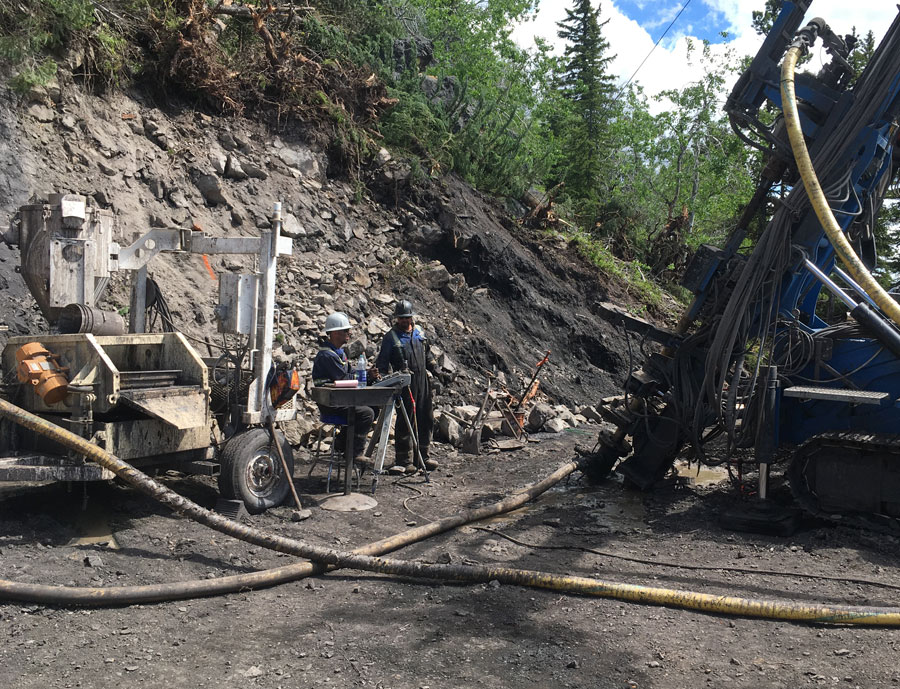 Good Earth Drilling Services Ltd. operates tracked drilling equipment that is capable of drilling RC, Coring as well as open hole programs. Our track rigs are set up to drill vertical as well as angle holes. We can drill 600 meter holes with our tracked rigs. They are angle capable. Our support equipment for these rigs is also all mounted on tracks allowing Good Earth Drilling Services Ltd. the ability to offer our clients the unique ability to access difficult drill sites while keeping the footprint low for access. Our equipment is modern and automated. Pipe handling equipment allows our staff to stay out of the line of fire reducing the exposure to hazard potential. Large air compressors of 1150 CFM accompany this equipment to allow for efficient drilling in the hardest to reach areas of a mine.