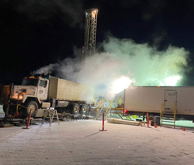Our equipment is set up to drill and complete pre-set surface casing. Rig 153 has been specifically designed with a 2” flexible cementing line on a hydraulic reel that allows for a bottom-up abandonment and/or top-down displacement of casing. Our Reimer cementing units allow for precise cement mixing on site.