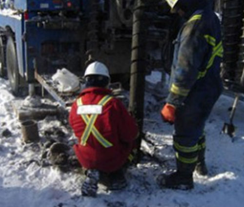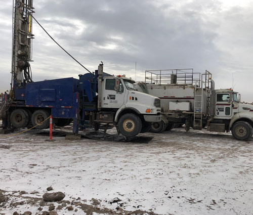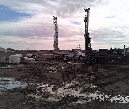 Rigs 130, 151, 152, 153, and 154 are all capable of completing monitoring wells. Our vast experience setting up monitoring wells includes piezometer installation and testing. Wells are set up with a sand pack slotted casing and cemented using our grout plants. We have completed numerous monitoring wells throughout Alberta and British Columbia in both the oilsands and coal mines. We have SPT, split spoon tooling as well as augers of various sizes for sampling. Augers consist of both solid stem as well as hollow stem.